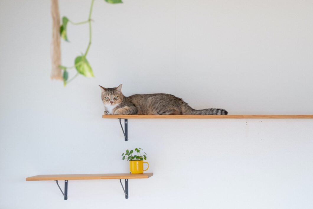 基本的に猫は高いところから見下ろすのが好きな動物。室内でも自由に上り下りができるように、猫用の階段やキャットウォークをつくってあげるのがおすすめです。できるだけ行き止まりの少ない、回遊性の高い専用通路があると猫ちゃんも運動不足にならずに済みます。