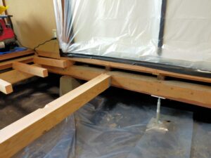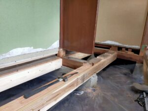 後日、畳を上げて、被害にあっている大引、根太を撤去し、床下に土間シートを敷き、断熱材もなかったので、床下断熱をし、