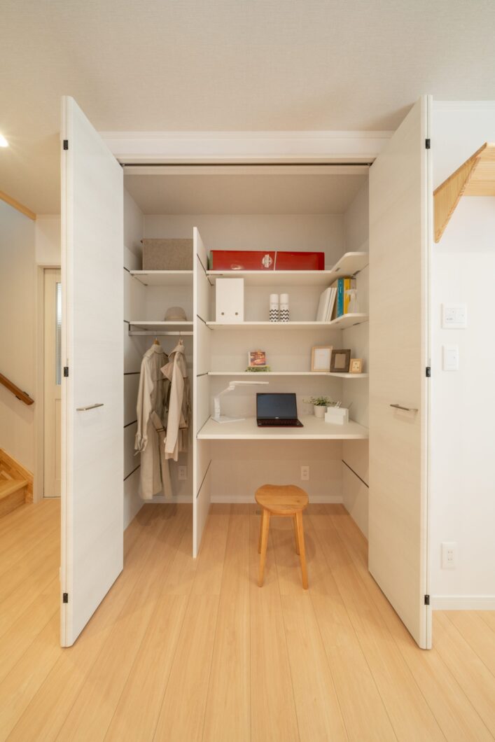 部屋の物入れを活用するのもおすすめです。急な来客時や勉強が途中の時などは、扉を閉めればごちゃごちゃしたものは隠せます。