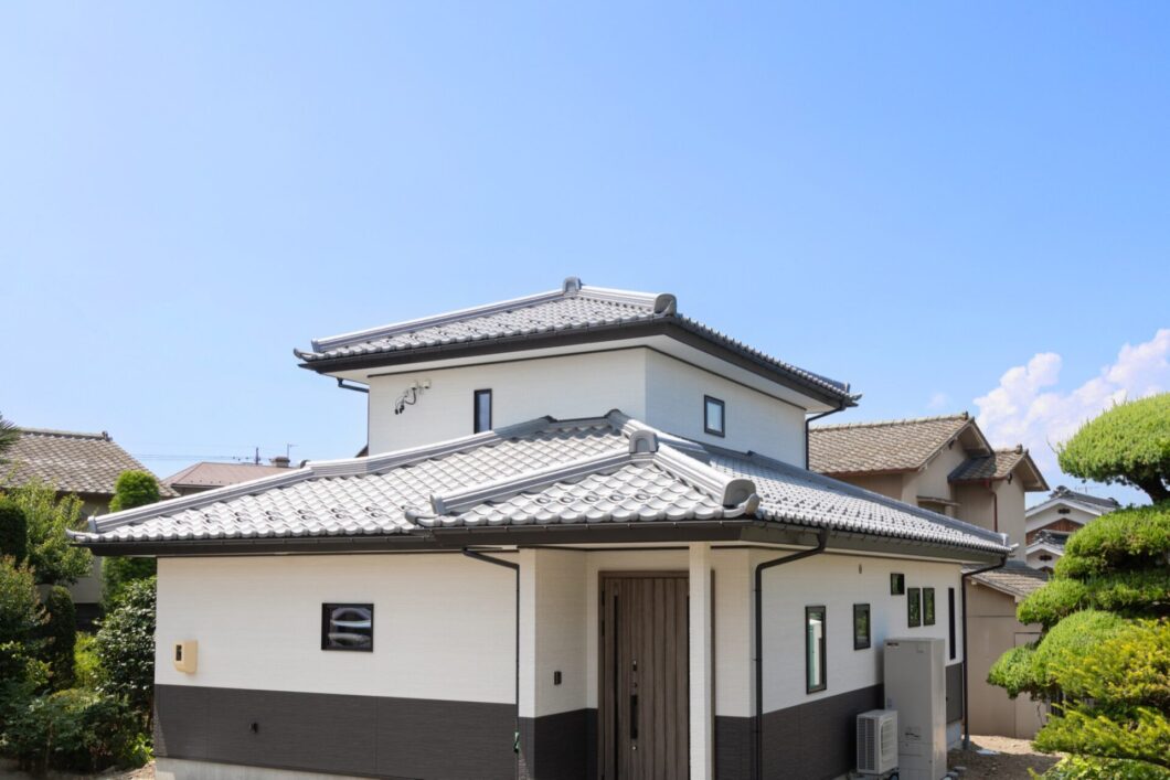 外観は、1階にボリュームを持たせた重心の低い落ち着いたデザインに。和瓦屋根とのバランスもよく、以前の家の面影を残しながらも現代的なスタイルを融合させています。