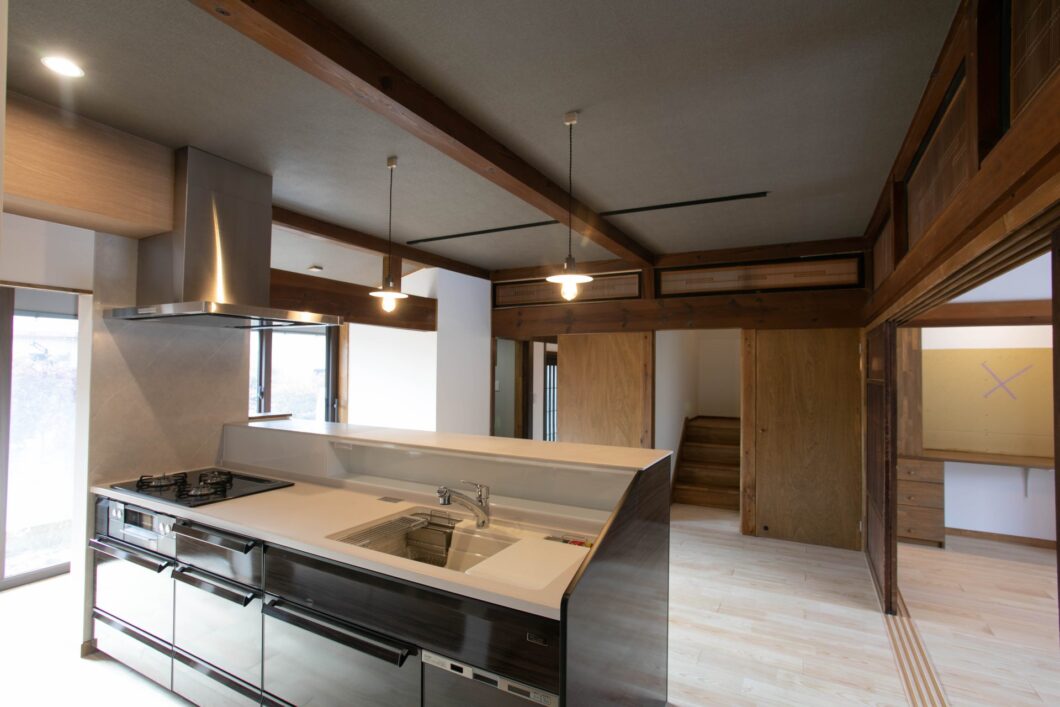 子世帯同様元の構造材はそのままに耐震・断熱改修を行い、内装・設備機器を一新することで現代の暮らしに適したリノベーションとなりました。