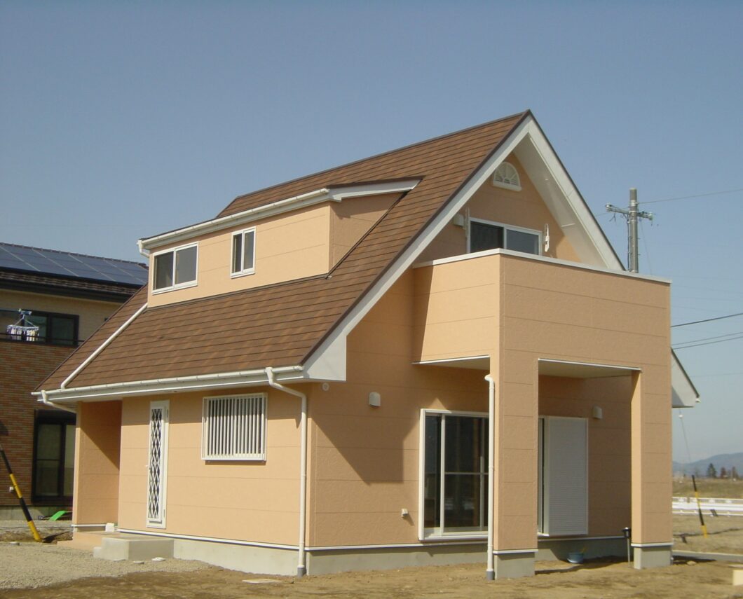 コンパクトながら家族の理想がギュッとつまったお家。三角屋根がとてもキュート。