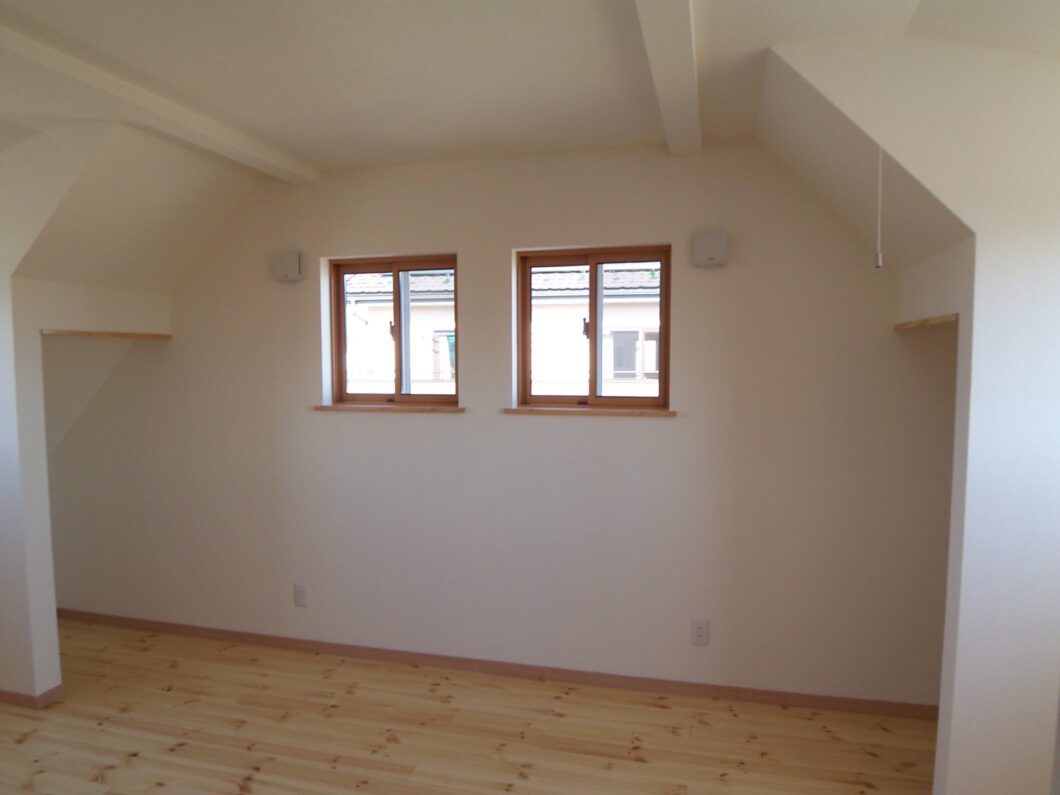2階はプライベート空間。屋根勾配がまるで屋根部屋のようなワクワク感を与えています。