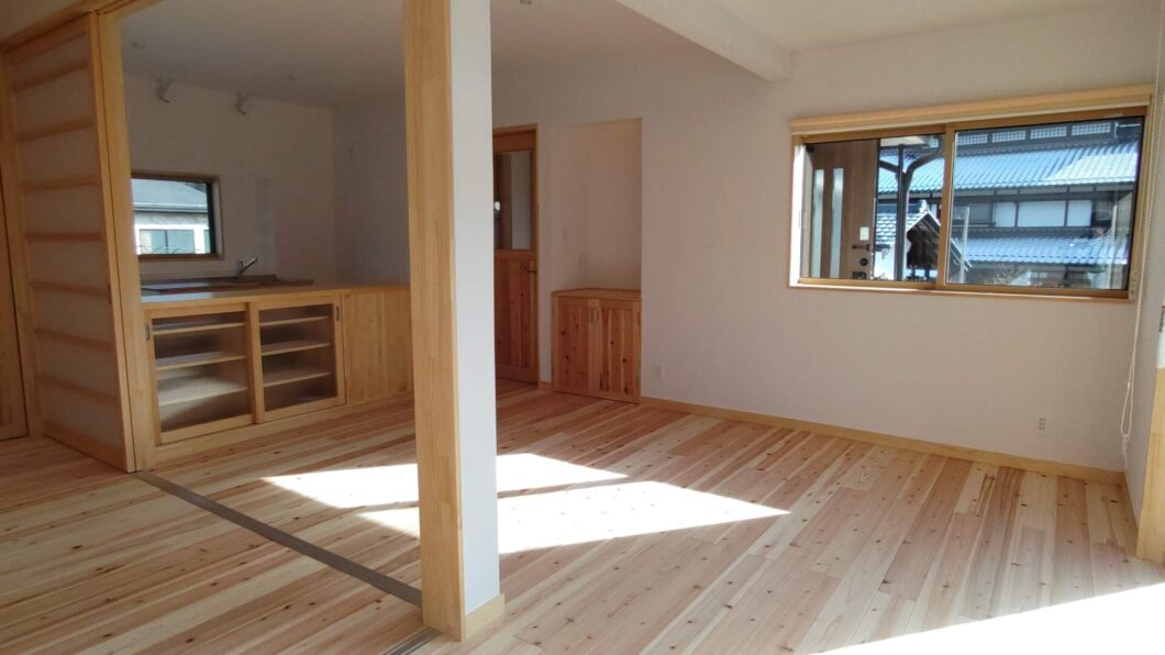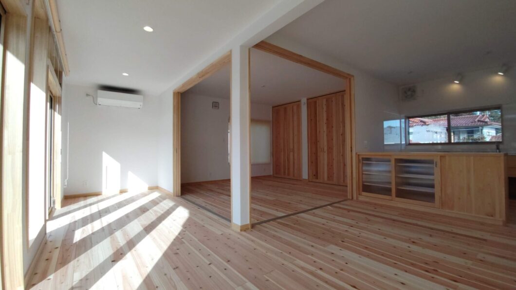 LDKに隣接して寝室を設けました。引き戸を開ければLDKとつながり、大空間が広がります。
