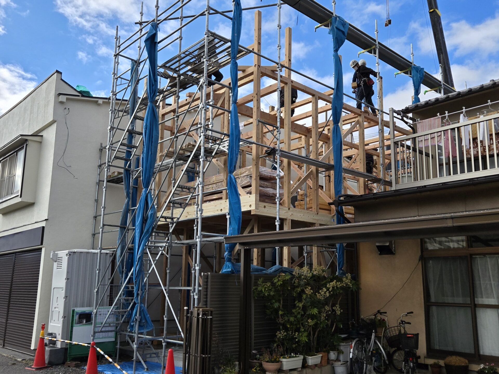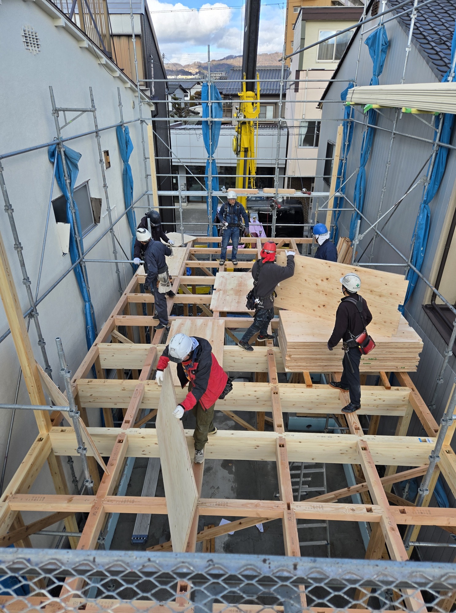 1月は、松本市街地にて店舗併用住宅の建前を行いました。